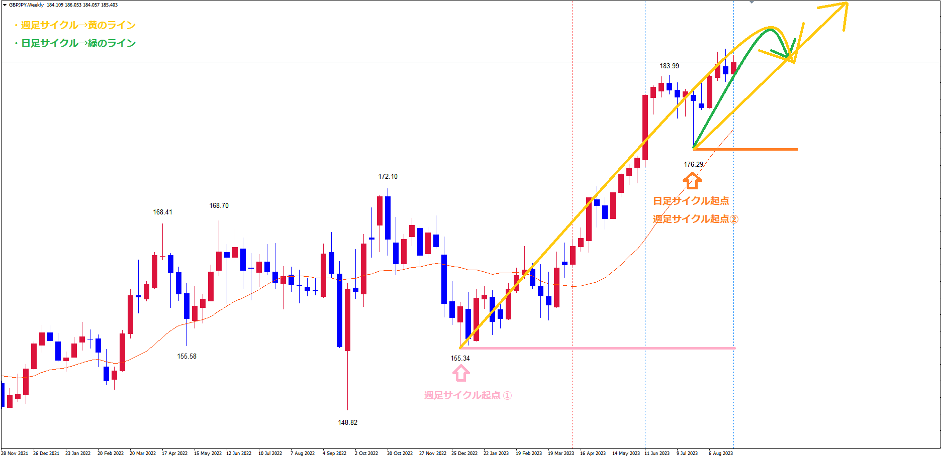 今回はポンド円の日足・週足のサイクル的認識とパターン&イメージがどうなるかについて解説していきます。