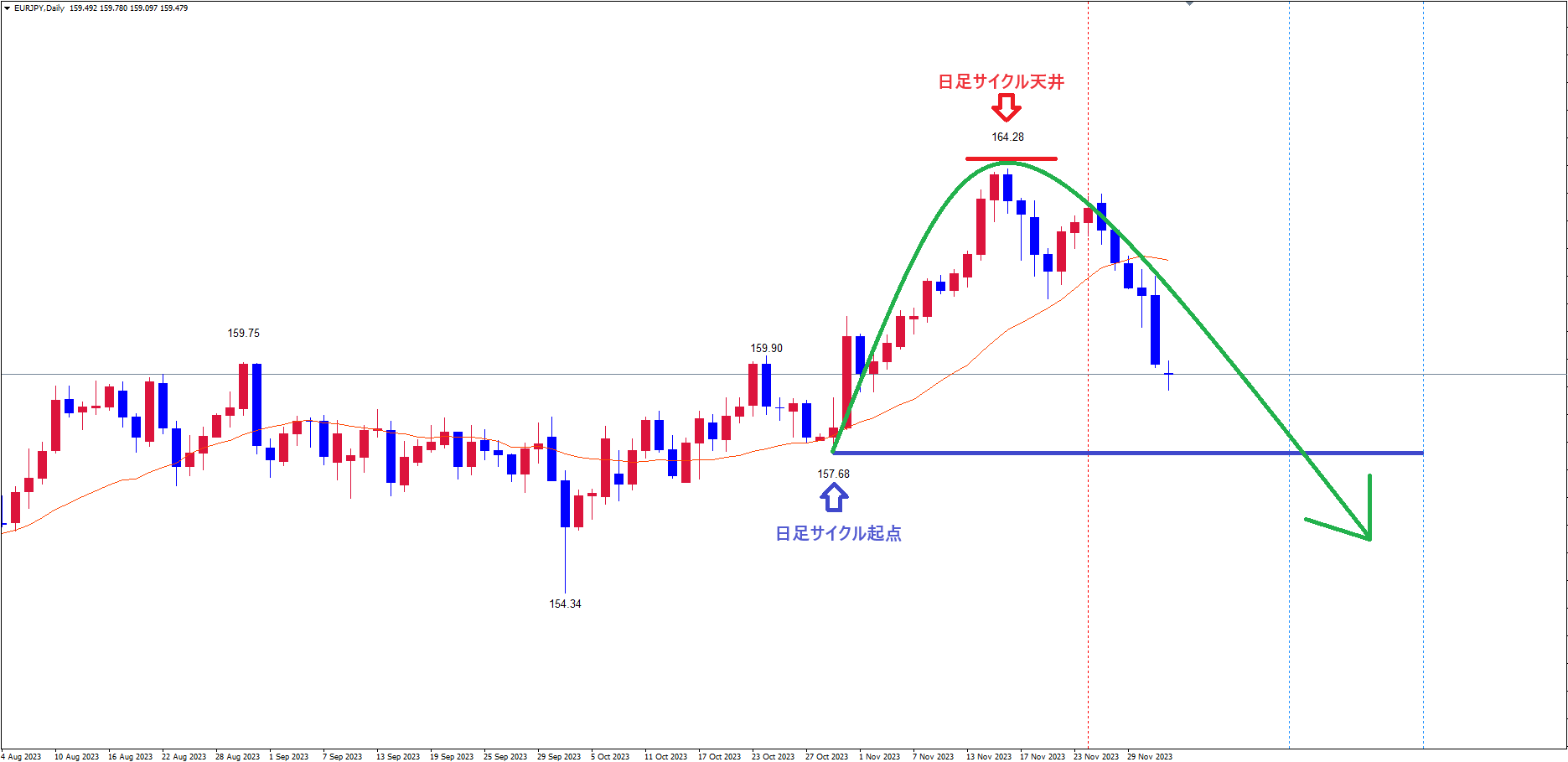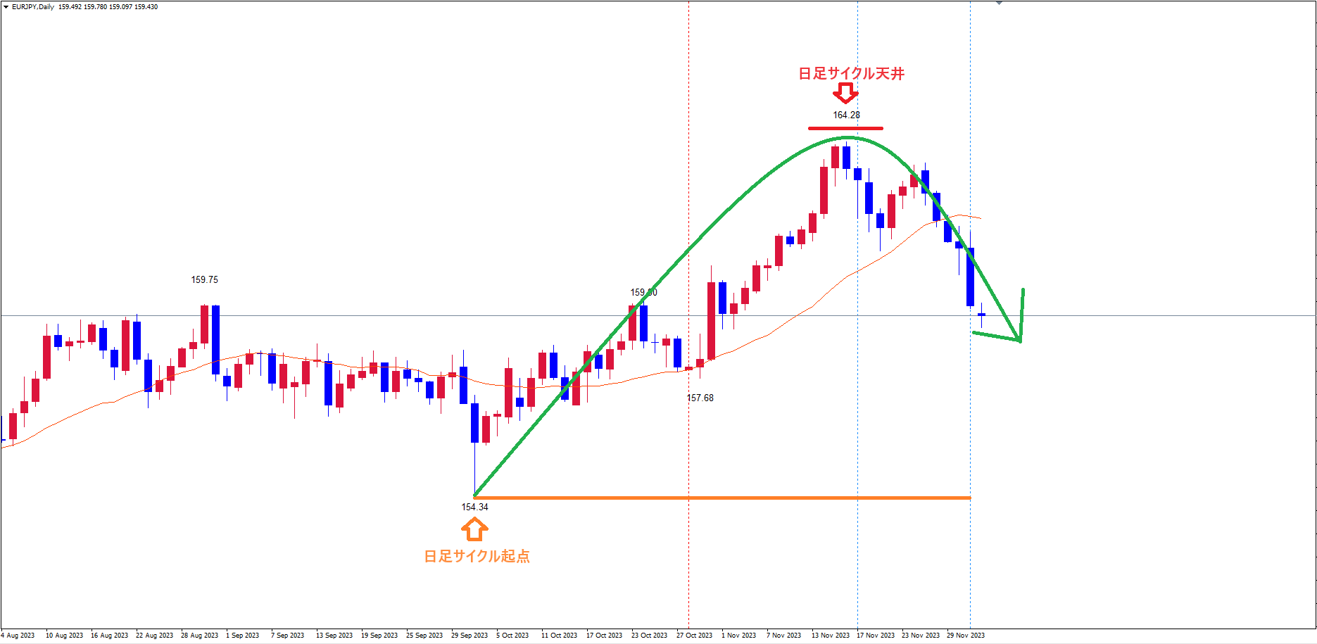 今回はユーロ円の日足サイクル的認識とパターン&イメージがどうなるかについて解説していきます。