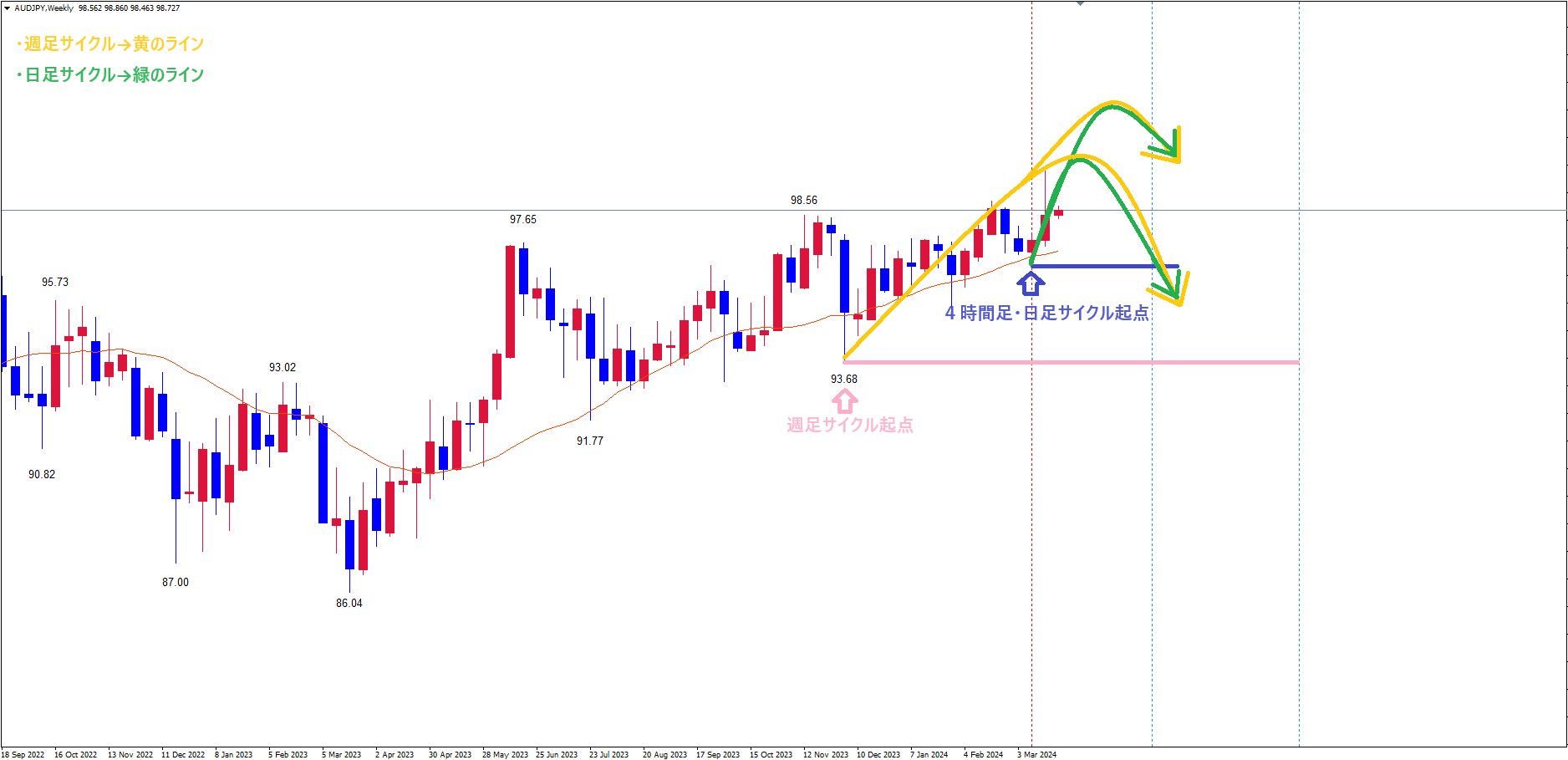 週足サイクルも、ライトトランスレーションのサイクルを想定しています✅