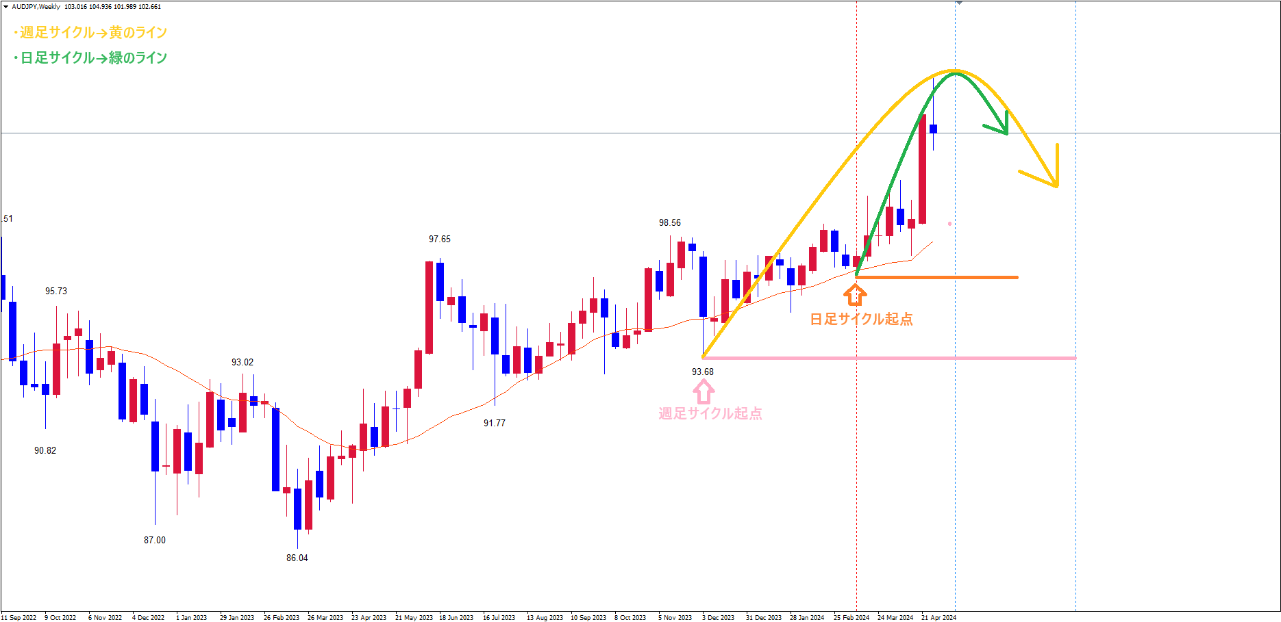 週足サイクルも、ライトトランスレーションのサイクルを想定しています✅