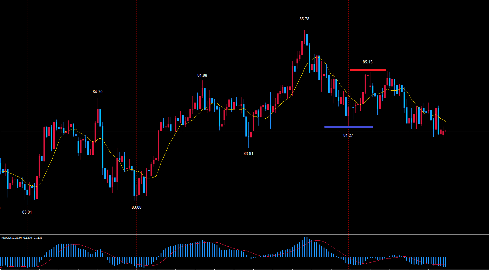 続落の場合は起点84.27からのサイクル、反転上昇の場合は起点83.91からのサイクル!と判断していきます。