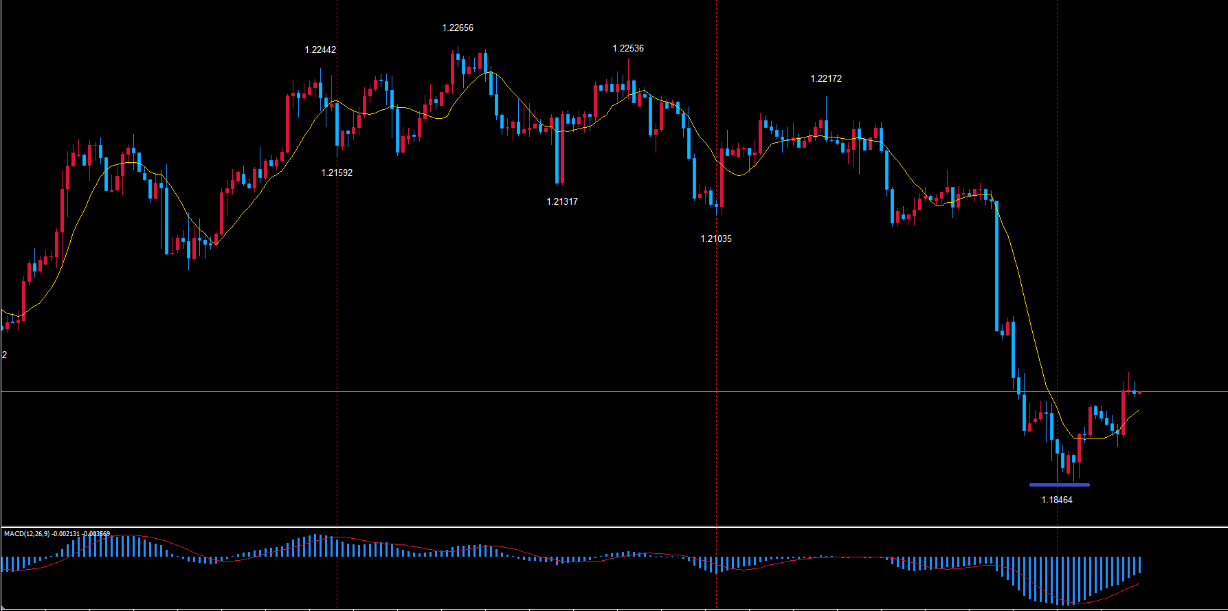 今回の4時間サイクルがライトトランスレーションの場合は日足サイクルは1.18464が起点。