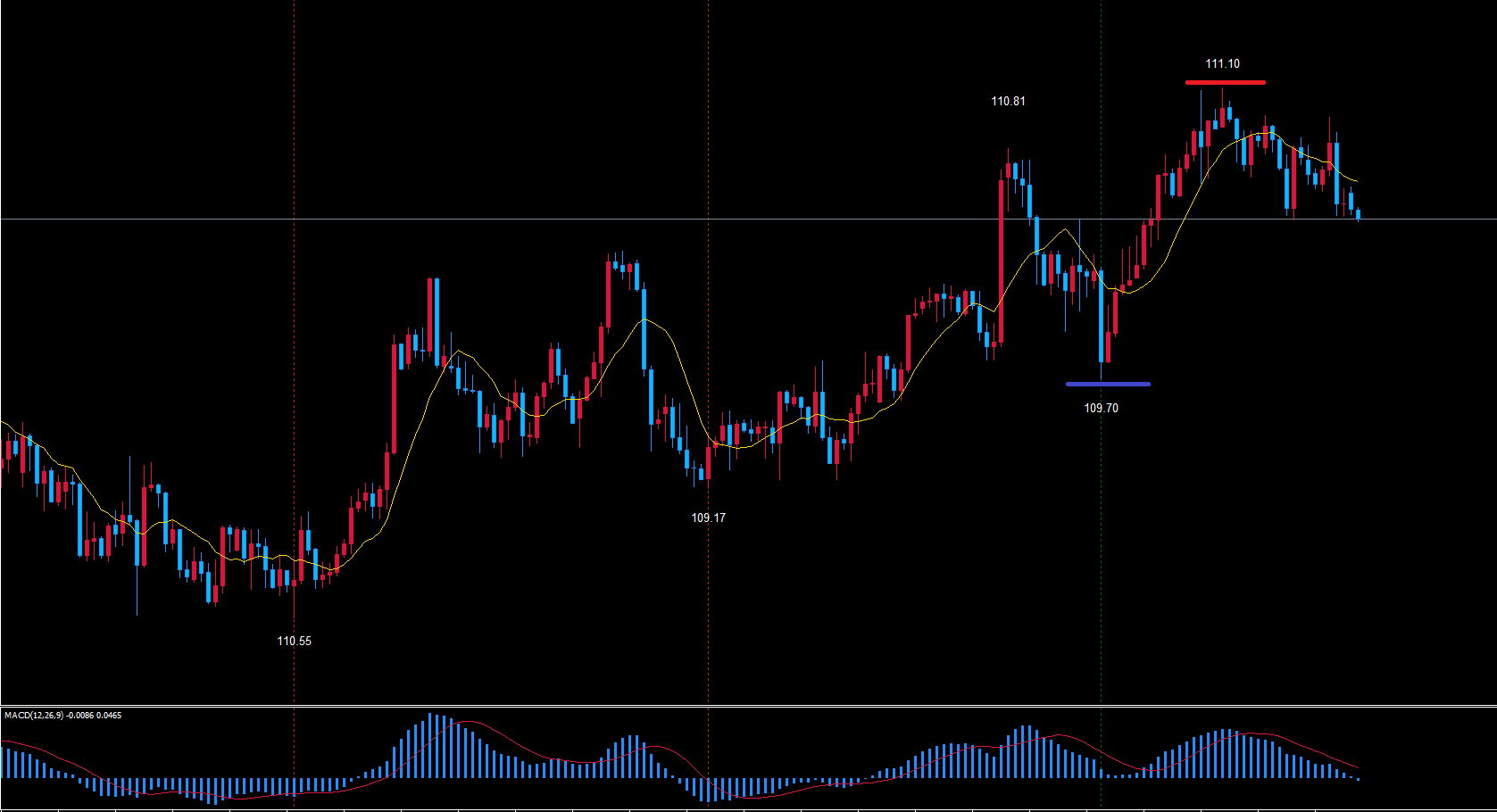 高値111.10付近ではショート、109.70付近ではロングと考えておく事が良いですね。