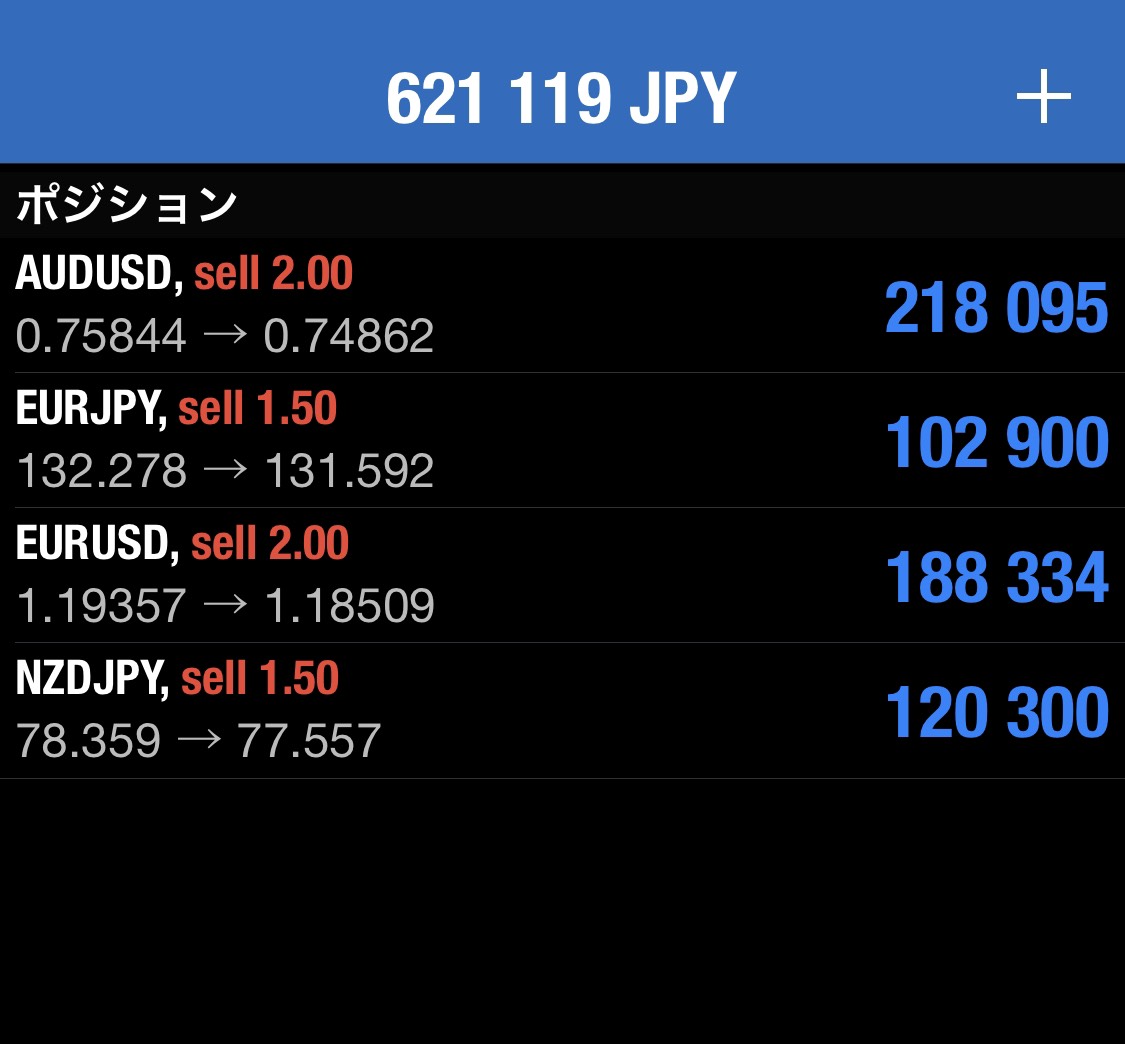 そこから高値を付けて下落の展開になったので、高値付近にいたクロス円はショート保有しています。