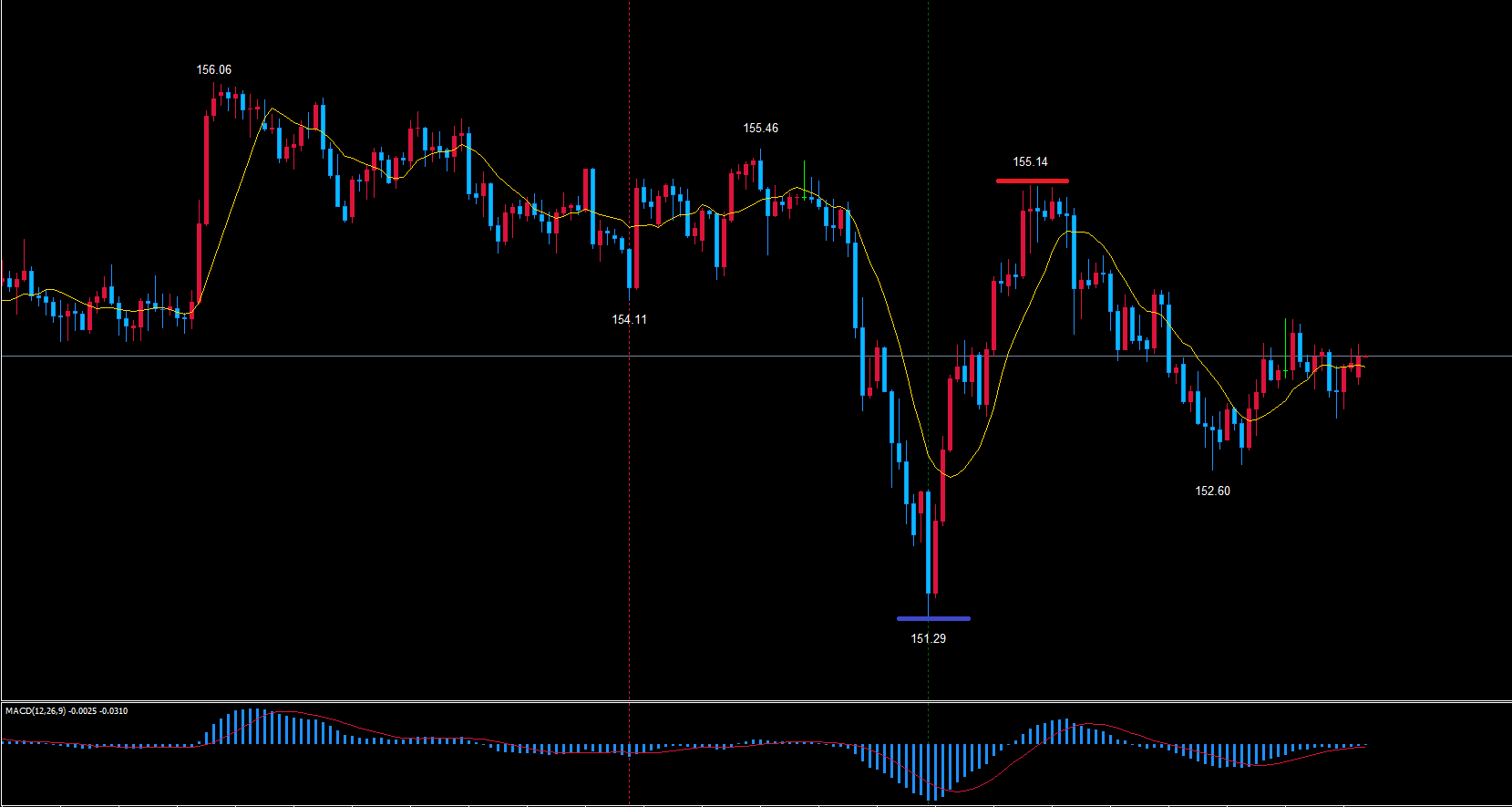 下落していく場合は底からのロング待ちで、上昇していく場合は152.60からのサイクルで天井待ち。 で見ていきます。
