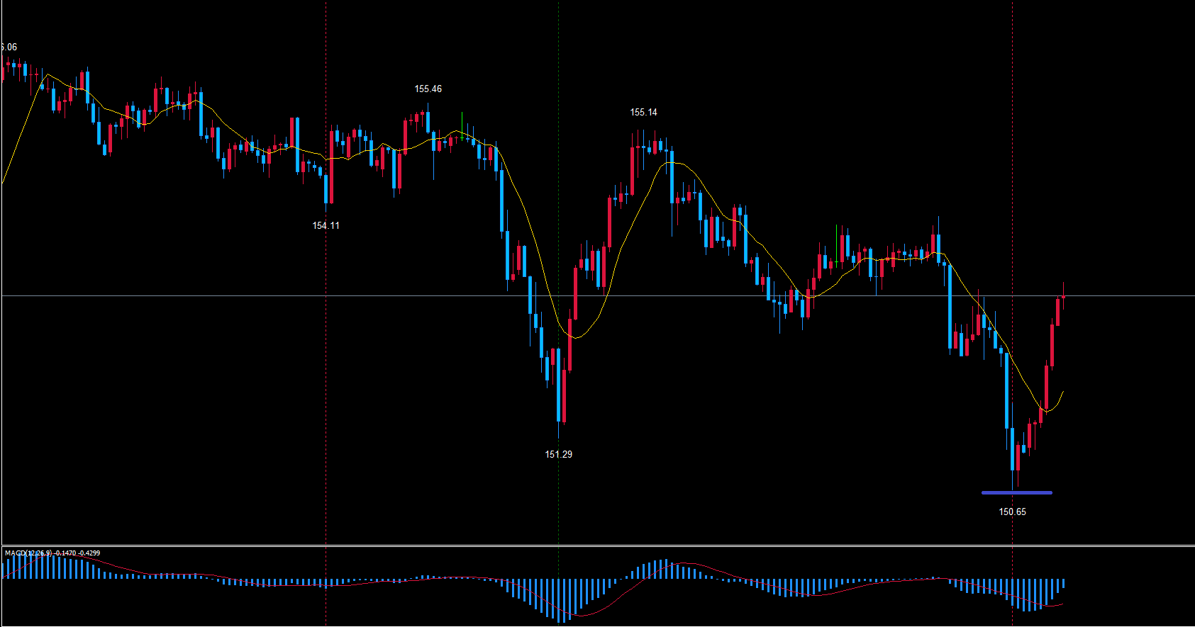 ポンド円4時間サイクルは起点の青のライン150.65から10本目です。