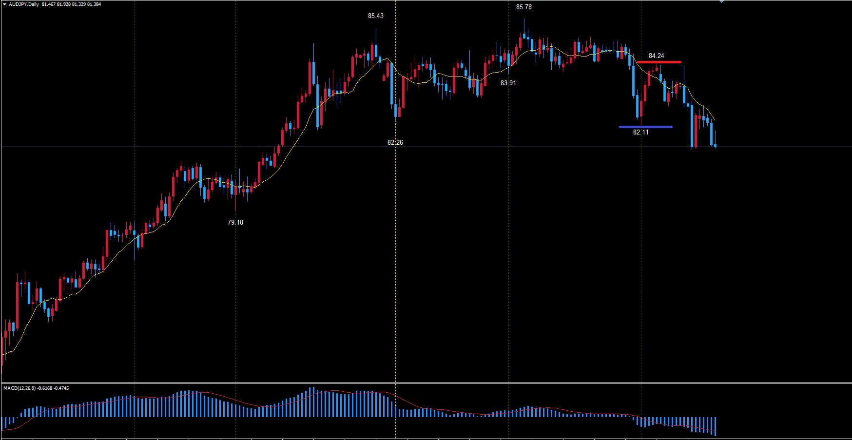 豪ドル円日足チャートです。