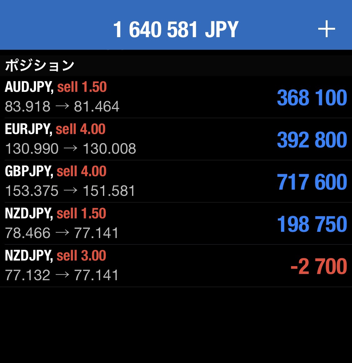 今日のポジション。